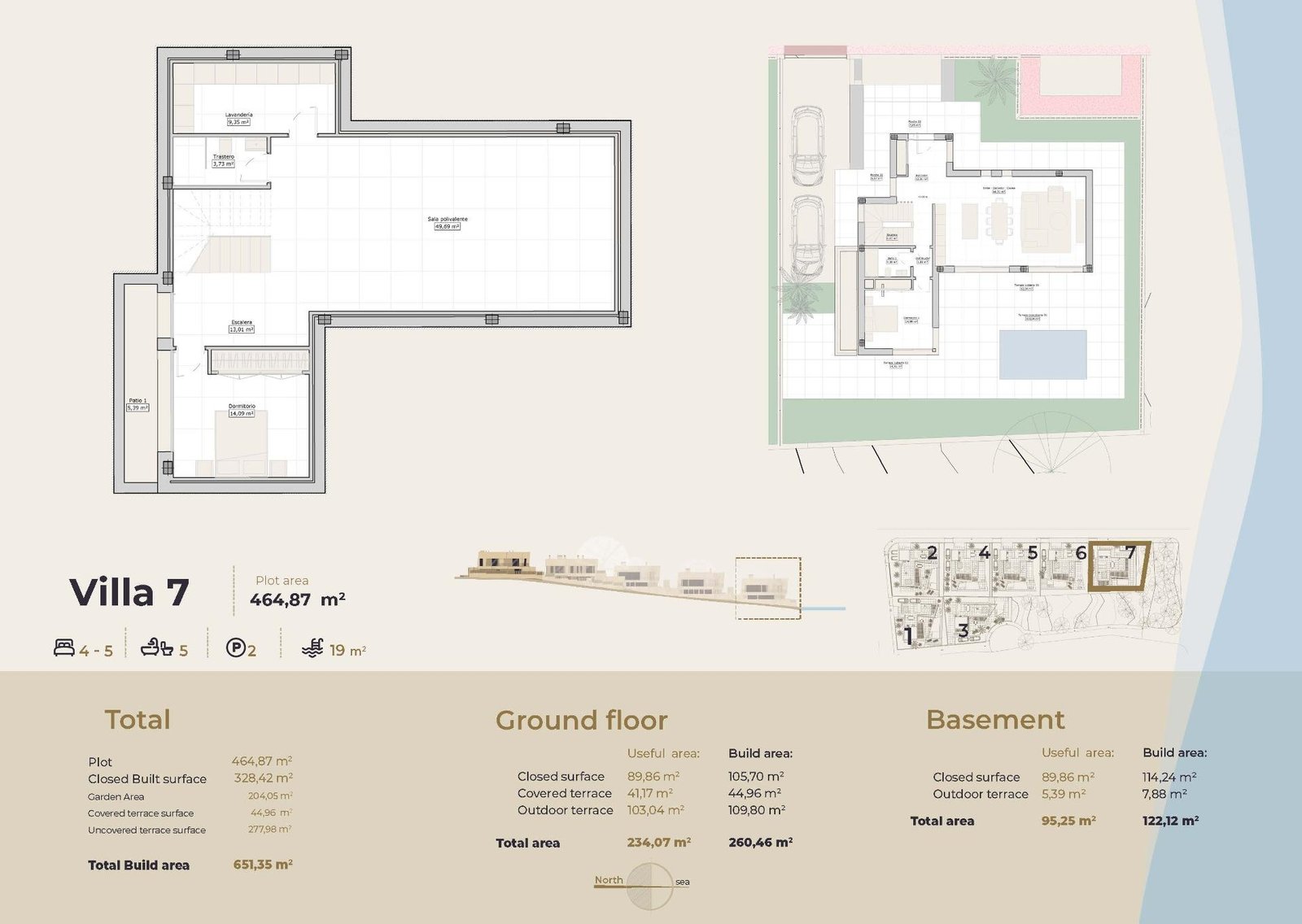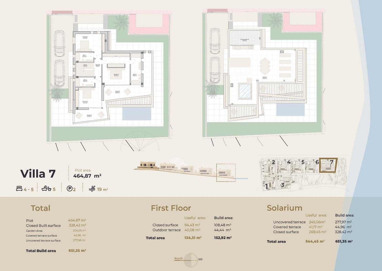 The villas are arranged over three floors plus a solarium. Each property boasts a large basement with natural light and ventilation, ready to be customized according to personal needs, whether a gym, cinema room, extra bedrooms or entertainment space. The main and first floors feature the main living areas and several terraces, while the spacious rooftop solarium allows residents to enjoy panoramic views. Four of the seven villas enjoy spectacular sea views from the solarium.