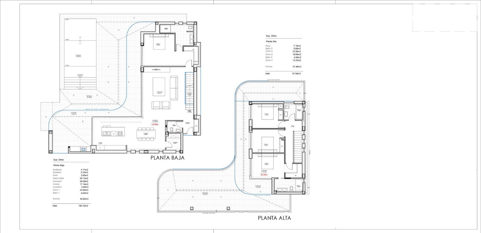 The ground floor is the heart of this home, featuring a spacious open-plan living area of 36 m² that connects to a vast outdoor terrace of 81 m². The high-end kitchen and dining area, measuring 20 m², are fitted with state-of-the-art appliances, making it ideal for both daily living and entertaining. Upstairs, the master suite offers complete privacy with a walk-in closet, en-suite bathroom, and access to a private terrace. Three additional bedrooms, each with their own en-suite bathrooms and terraces, provide luxurious comfort for family members or guests.
