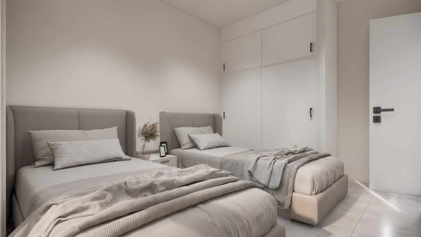 Upstairs there are two spacious bedrooms, each with its own bathroom, one of which is en-suite. Both bedrooms have access to a 28 m² open private terrace. For those who want even more outdoor space, there is an optional rooftop solarium available at an additional cost.
