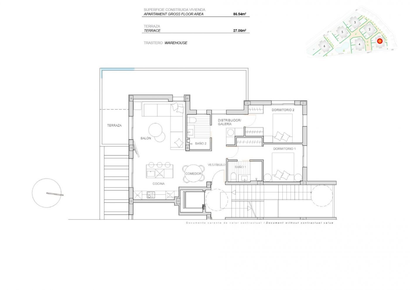 Located in a private gated resort, with a main access entrance and 24 hours security. The resort is designed around an impressive 126.000 m2 green area.