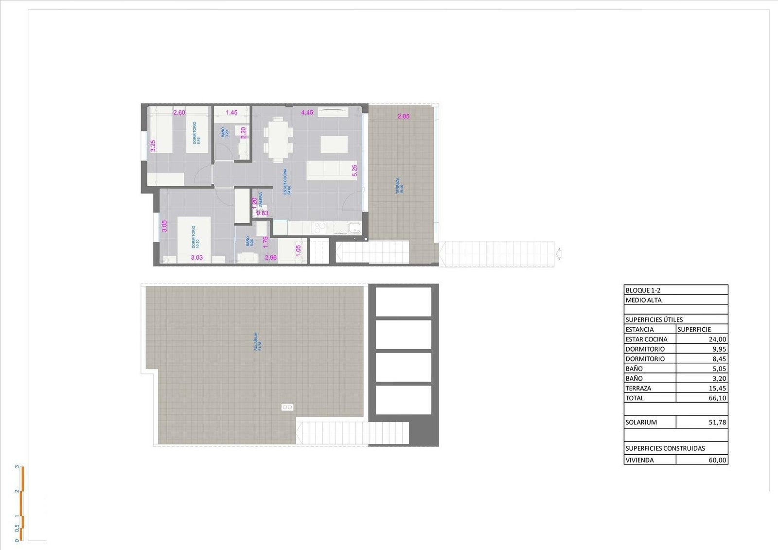 First floor bungalows with private solariums.