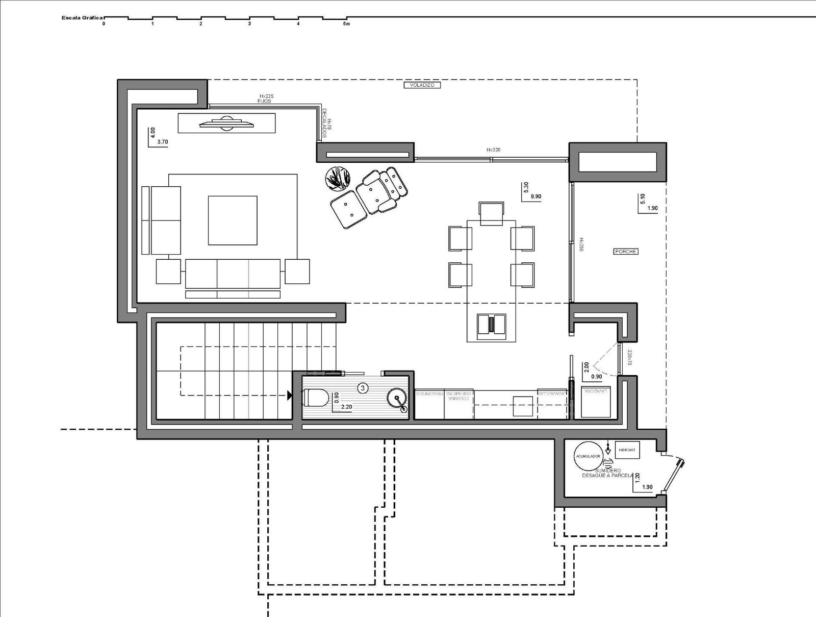 Its modern architecture, based on straight lines, combined with the Mediterranean style blends perfectly with its surroundings. This villa has been completely designed to enhance functionality and comfort, without cutting back an ounce on design. The villa is surrounded by a large garden with indigenous plants and elements. A feature that particularly stands out is the natural stone walls.