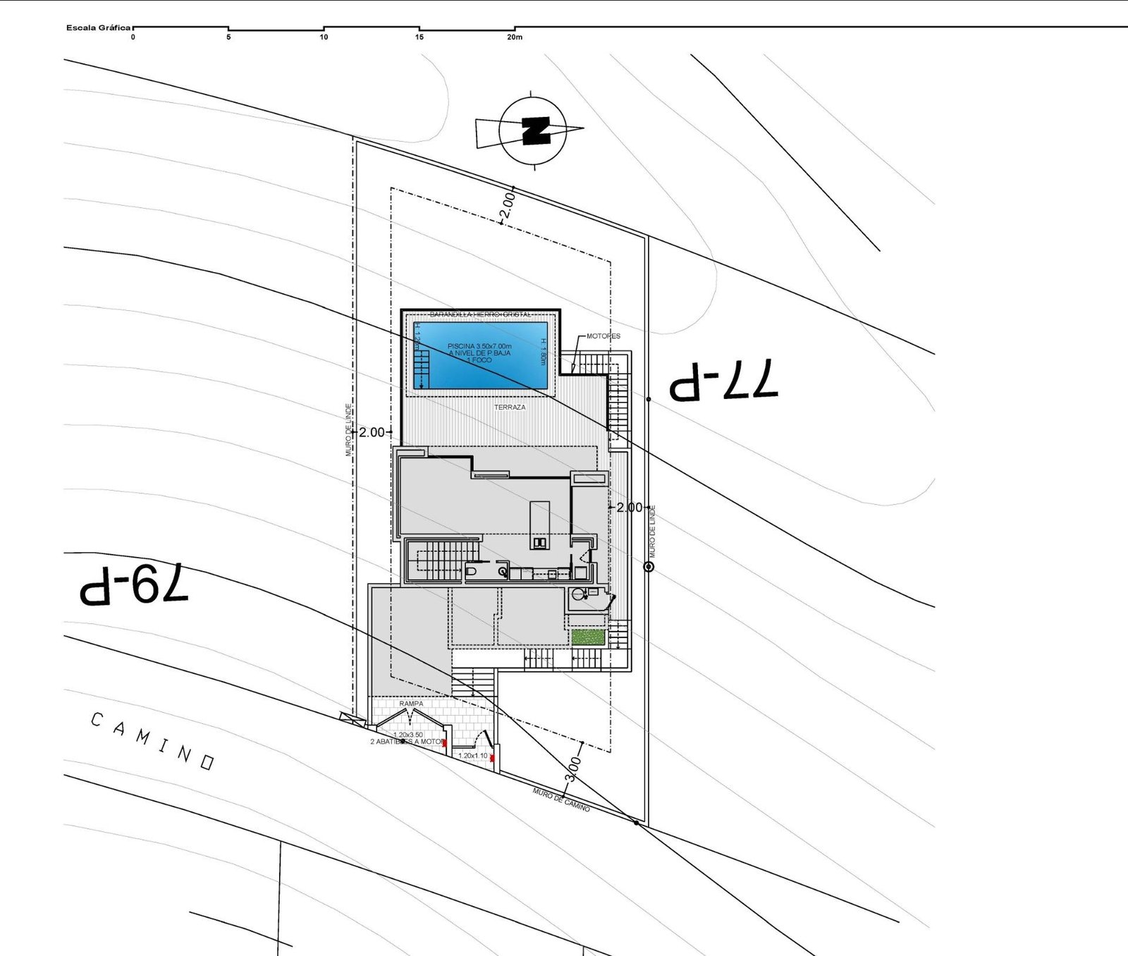 The villa has a private parking area on the top floor for up to two vehicles, since access to the villa is located on the same floor.