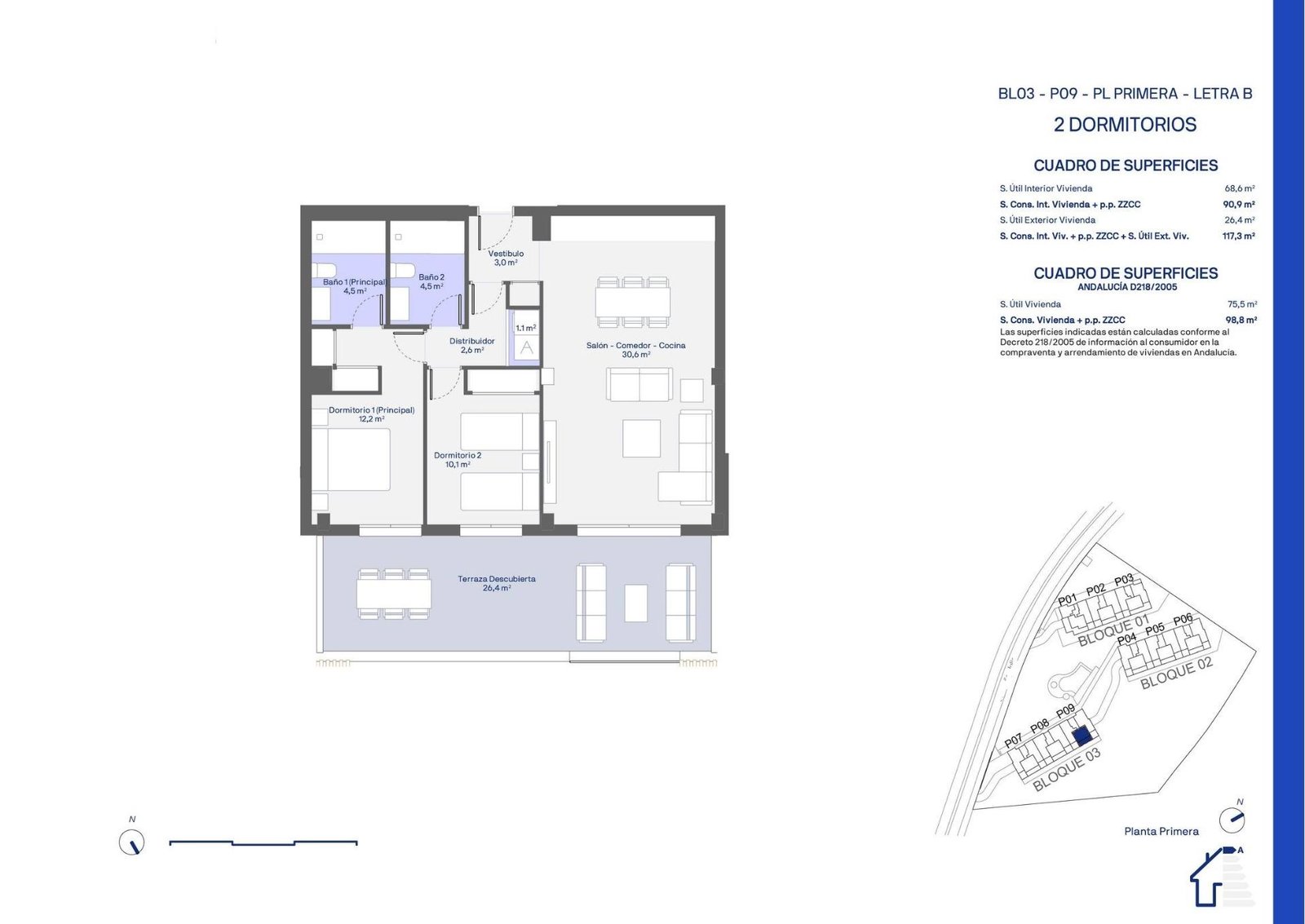 All the spaces, among which we can find ground floor apartments with gardens and penthouses with generous terraces, are designed down to the last detail, in order to enjoy unobstructed views of the sea and the green landscape that surrounds the complex.