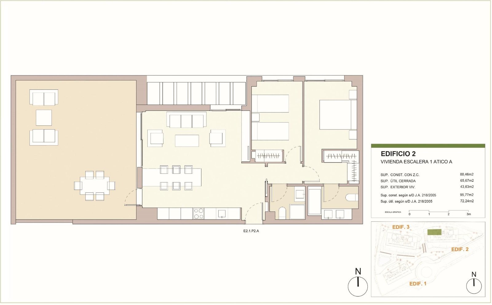 Private residential complex with swimming pool, garden areas and children’s playground. The design of this residential has sought to integrate the construction with its surroundings, taking advantage of the topography of the plot, which allows 360º views of the sea and the mountains.