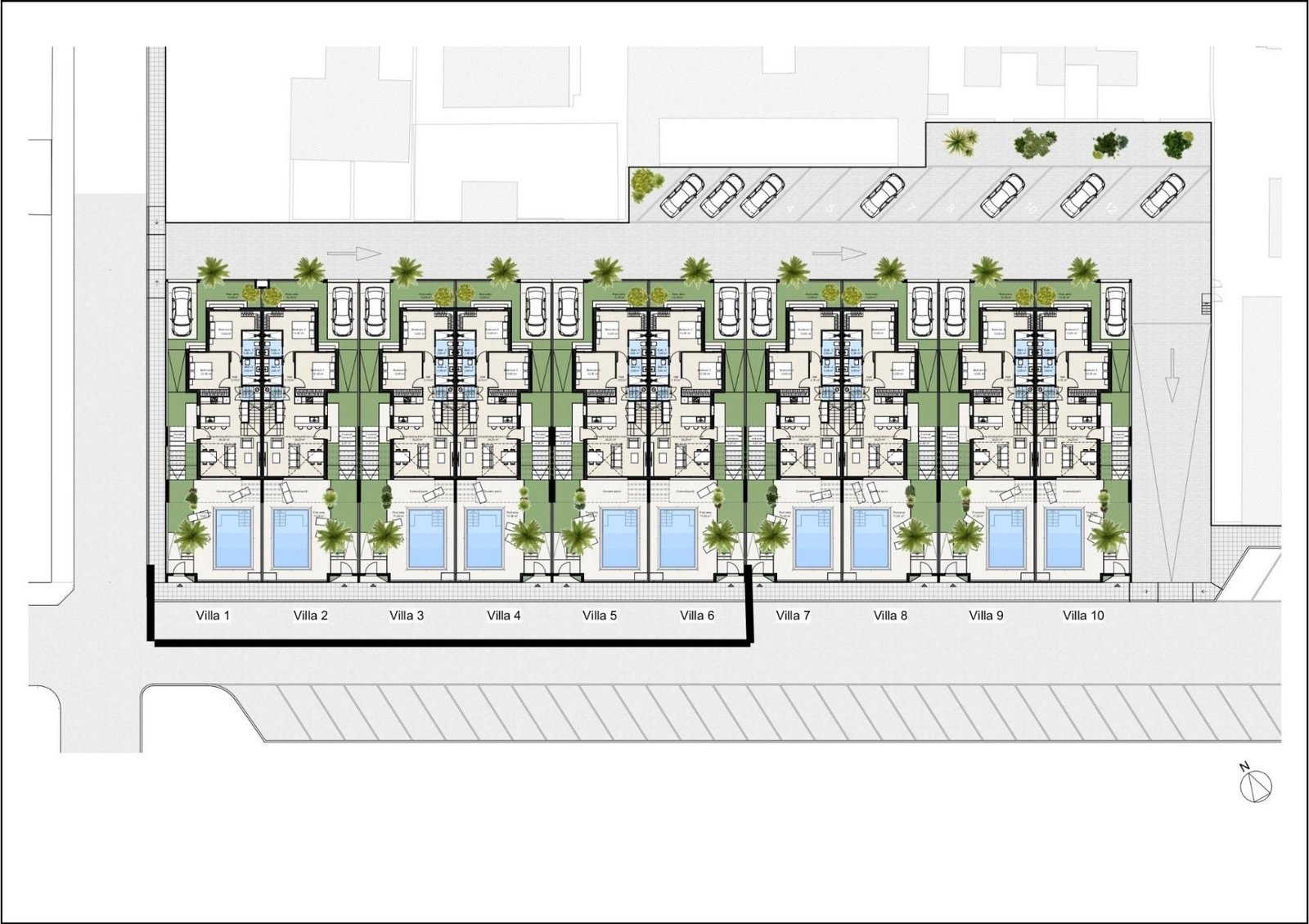 We offer for sale 6 villas with 3 bedrooms and 3 bathrooms.