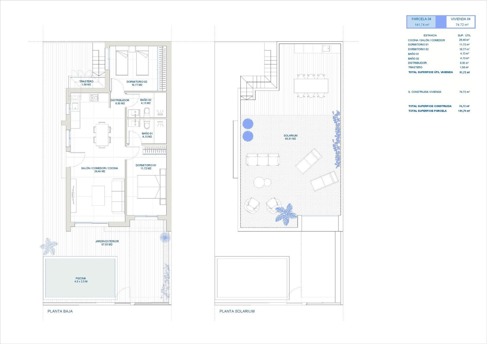 Modern villas build over one floor, has 2 or 3 bedrooms, 2 bathrooms, open plan kitchen with the lounge area, fitted wardrobes, private solarium.