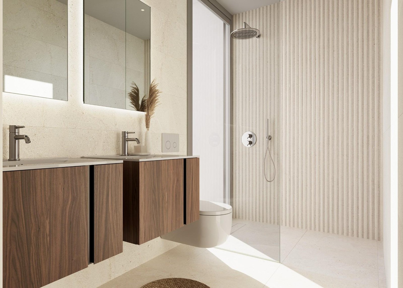 All villas are built to a high standard using quality materials and finishes. Kitchens come fully furnished and equipped with appliances, while Porcelanosa finishes are used throughout the kitchens, bathrooms and tiling, adding a premium touch. Additional features include exterior carpentry with thermal break and double glazing, motorized shutters in bedrooms and pre installation of ducted air conditioning. Each home also benefits from a private swimming pool.