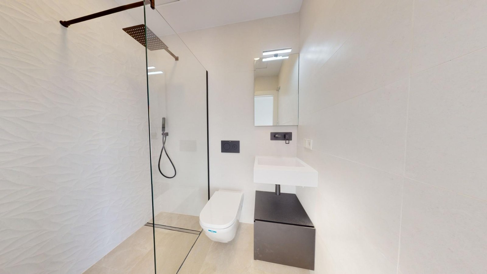 Modern villas has 3 bedrooms, 3 bathrooms, open plan kitchen with living area, terrace, solarium, private garden with the pool and parking space.