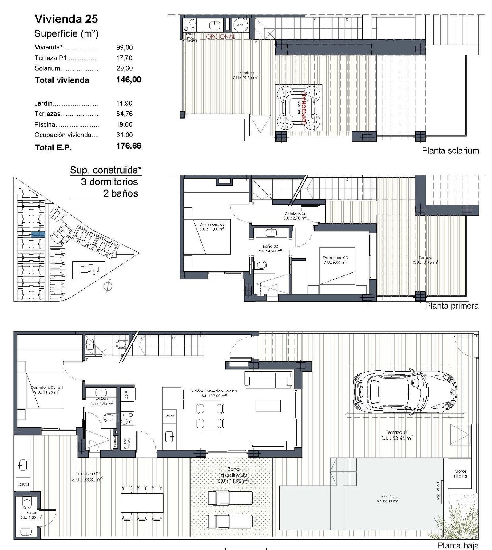 Each property features a private plot with its own swimming pool, creating the perfect environment to enjoy the Mediterranean climate throughout the year. The homes include 3 bedrooms and 2 or 3 bathrooms plus guest toilets, offering comfortable and functional living spaces ideal for families or guests.